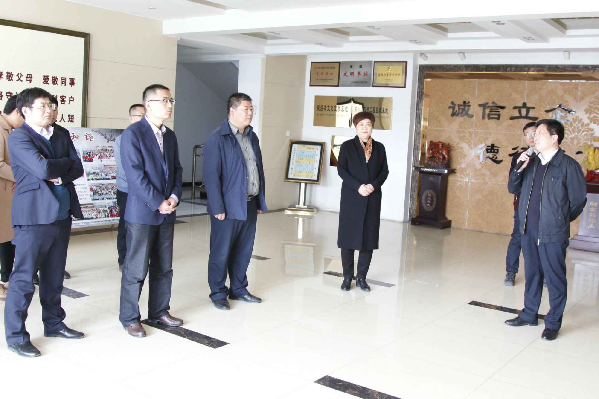 3月23日,市中区组织部宋部长带领市中区各部门街道党委负责人来公司现场观摩企业基层党建示范点工作,公司董事长颜廷英代表汇报公司“双飘双提”的发展理念,通过党旗飘扬和文化飘香两方面引领促使公司干部员工提振企业发展,从而提升企业效率,党建引领企业发展工作受到各级领导好评。